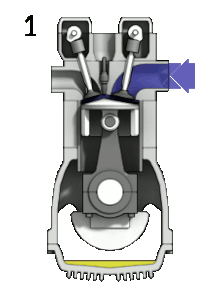4행정 기관의 작동 1.흡입 2.압축 3.폭발 4.배기