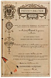 루돌프 디젤이 취득한 디젤 기관의 특허증.