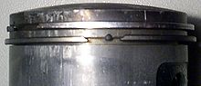 두 개의 피스톤 링이 엔진 피스톤에 장착되어있다. 아래의 링은 중간에 끊어져 있음을 확인할 수 있다.