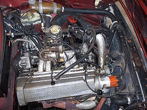 EGR valve the top of box on top of the inlet manifold of a Saab H engine in a 1987 en:Saab 90
