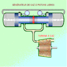 자유 피스톤 기관은 복합기관의 일종으로 대향형의 자유 피스톤을 가진 2행정기관을 가스 발생기로 하고, 이 연소가스로 출력터빈을 구동하여 동력을 발생시키는 정적가열사이클의 가스터빈이다. 그러한 피스톤 기관의 목적은 전력을 발생시키는 것이다. 자유 피스톤 기관의 기본 구성은 일반적으로 연소 실린더의 번호를 참조하여, 단일 피스톤, 이중 피스톤 또는 대향 피스톤으로 알려져있다. 자유 피스톤 기관은 동력 행정마다 전후 사이클이 필요하기 때문에 일반적으로 2행정 동작 원리로 제한된다.